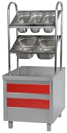 Прилавок для столовых приборов ONEGA МЛОЭ/ПСХ используется на предприятиях общественного питания и торговли для временного хранения и последующей раздачи подносов, тарелок, столовых приборов и хлебобулочных изделий.