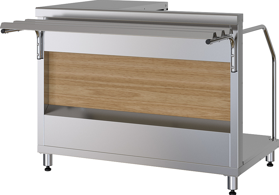 Прилавок кассовый Марихолодмаш ПК11 используется в составе линии раздачи Шеф 1500 и Шеф 1120 на предприятиях общественного питания, торговли и пищевых производствах для работы с покупателями. Материал корпуса - высококачественная нержавеющая сталь.