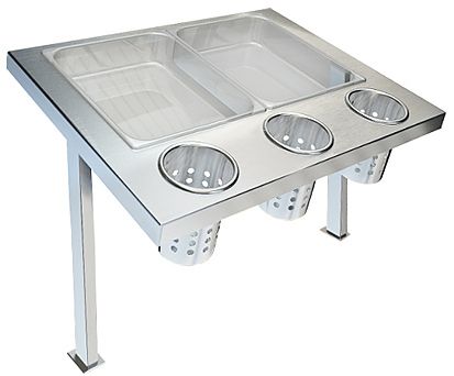 В комплект поставки входят 3 стакана под приборы и 2 гастроемкости GN 1/2.