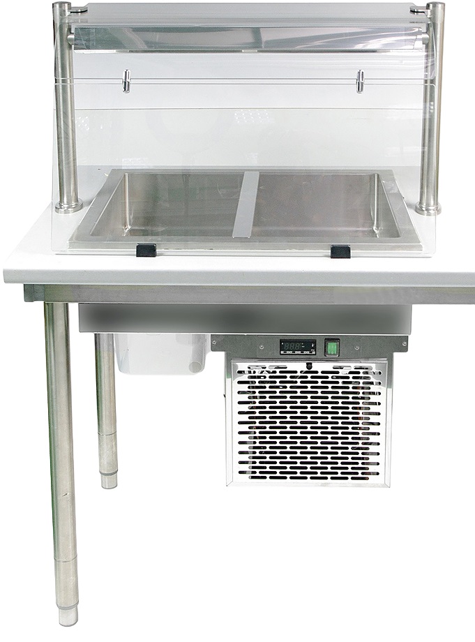 Полка-надставка Kocateq DM94588NE используется совместно с мармитом модели DM94943.2 на предприятиях общественного питания, торговли и пищевых производствах для демонстрации готовых блюд. Модель оснащена стеклом для минимизации загрязнения продуктов питания, полкой и подсветкой. Материал стойки и полки - высококачественная нержавеющая сталь.