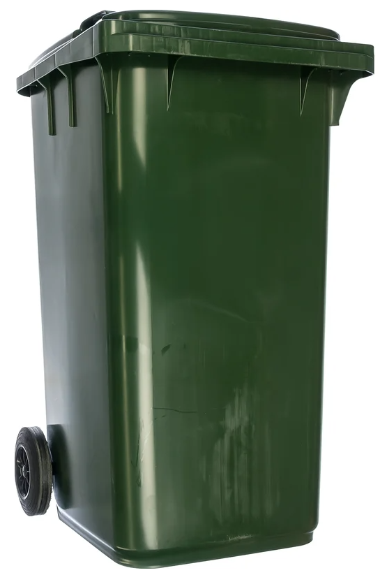 Мусорный контейнер 240л, зеленый предназначен для сбора мусора. Изготовлен из прочного пластика. Модель оснащена еврозахватами, что облегчает загрузку в мусоровоз.
