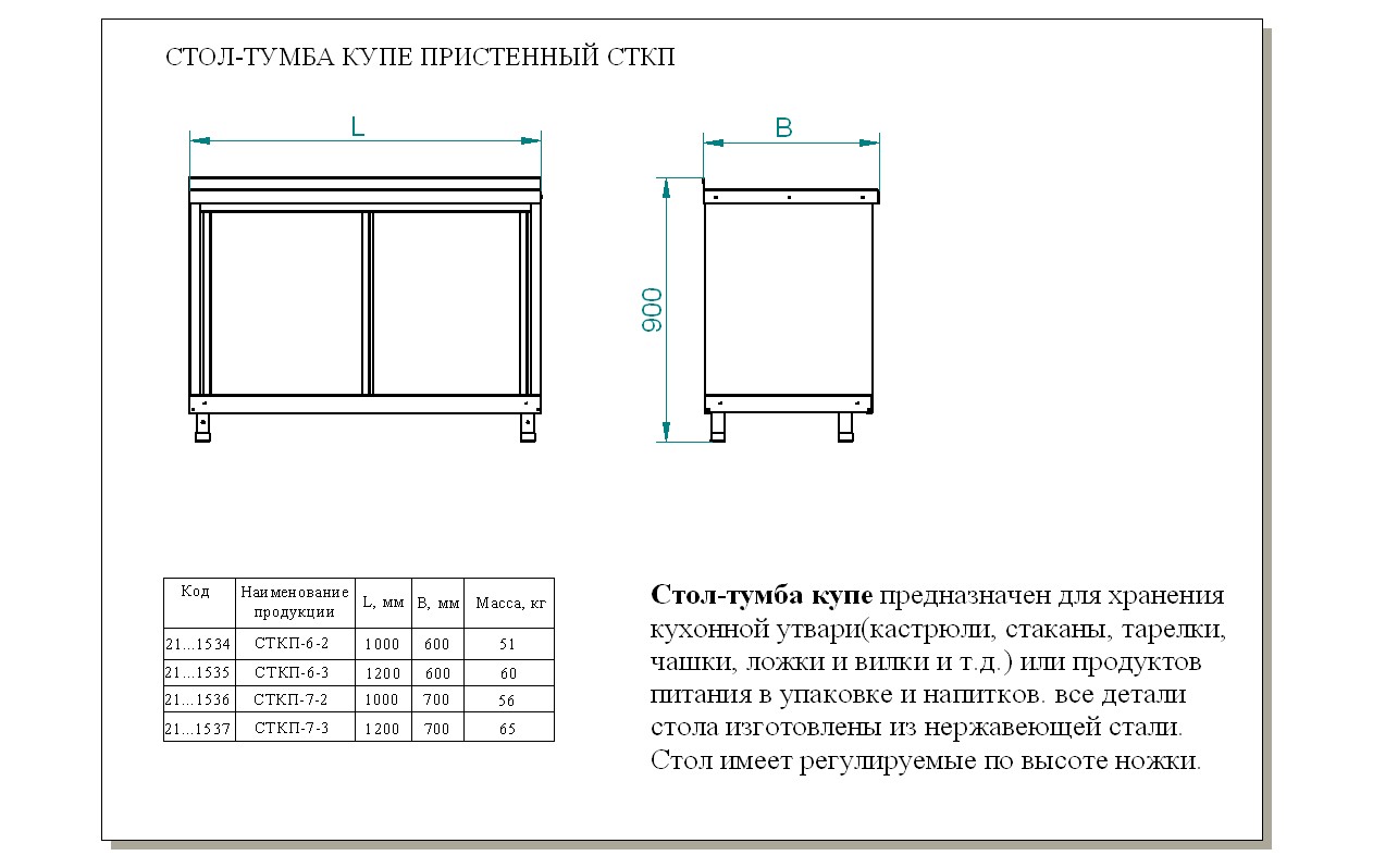 Производственный стол Abat СТКП-7-2 предназначен для раскатки теста, обработки ингредиентов для приготовления блюд, хранения посуды, кухонных принадлежностей и продуктов, не требующих специального температурного режима на предприятиях общественного питания и торговли. Модель оснащена регулируемыми по высоте полкой и ножками.