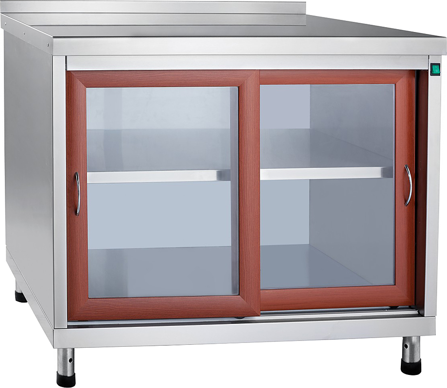 Конструкция выполнена из нержавеющей стали, дверцы - из стекла в раме из МДФ.