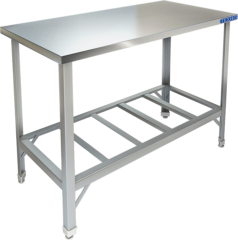 Производственный стол Техно-ТТ СП-145/2008 предназначен для разделки и обработки пищевых продуктов, а также для расстановки и хранения посуды и кухонного инвентаря на предприятиях общественного питания, торговли и пищевых производствах. Модель оснащена регулируемыми по высоте ножками, что позволяет компенсировать неровности пола. Материал разборного каркаса - уголок (40x40 мм) из нержавеющей стали AISI 304, материал столешницы - нержавеющая сталь AISI 304, материал полки-решетки - нержавеющая сталь AISI 304.