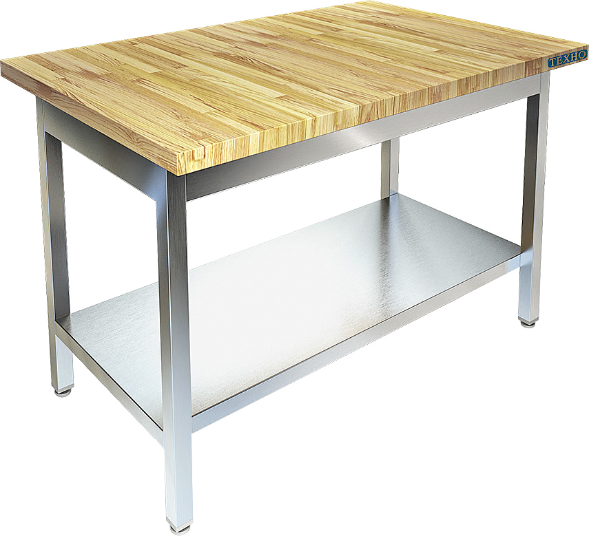 Кондитерский стол Техно-ТТ СП-333/1708 предназначен для раскатки теста и обработки ингредиентов для приготовления кондитерских и хлебобулочных изделий, а также для расстановки и хранения посуды и кухонного инвентаря на предприятиях общественного питания, торговли и пищевых производствах. Модель оснащена регулируемыми по высоте ножками, что позволяет компенсировать неровности пола. Материал разборного каркаса - труба (40x40 мм) из нержавеющей стали AISI 430, материал сплошной полки - нержавеющая сталь AISI 430, материал столешницы - бук.