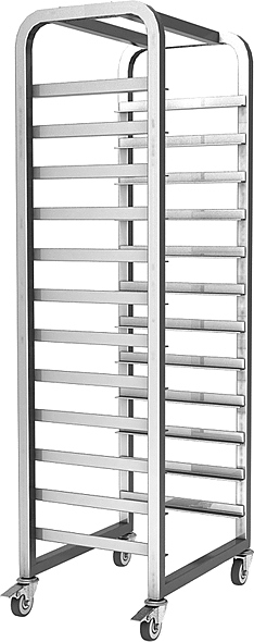 Тележка-шпилька Hessen ТШГ-12 используется на предприятиях пищевой промышленности, общественного питания и торговли для хранения и транспортировки противней, подносов и гастроемкостей. Модель оснащена тормозами. Изделие произведено с использованием программы Technology without Injuries - комплекса технологических решений, направленных на уменьшение травмоопасности для персонала, работающего на оборудовании. Тележка полностью выполнена из пищевой нержавеющей стали.
