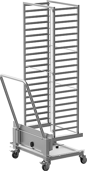 Вкатная тележка UNOX XCB1001 используется совместно с конвекционными печами UNOX серий BakerLux и расстоечными шкафами UNOX XL 1003 на предприятиях общественного питания и торговли, в пекарнях и кондитерских для удобного перемещения листов для выпечки и гастроемкостей.