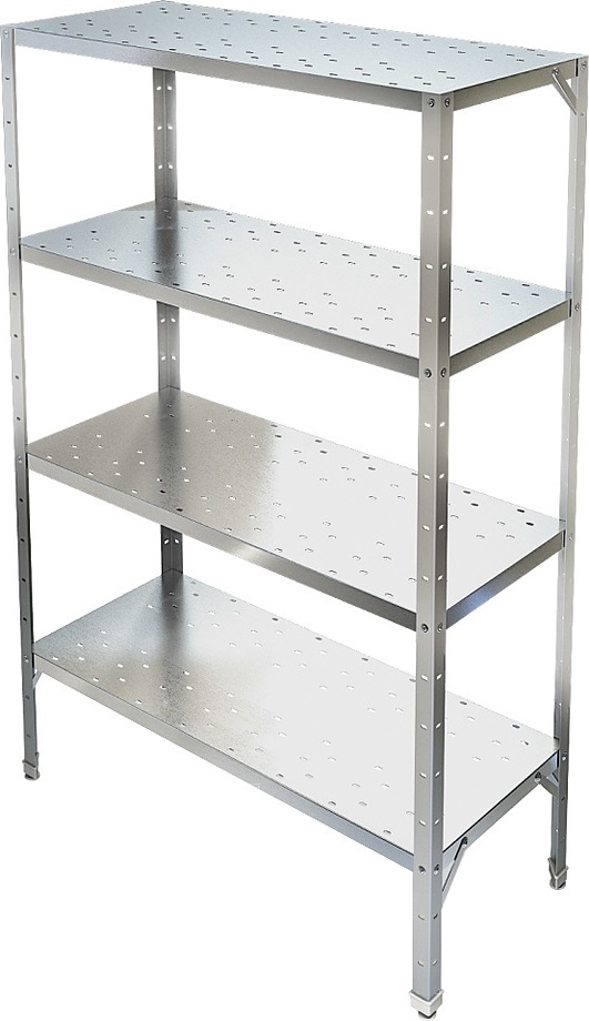 Кухонный стеллаж Техно-ТТ СТР- 474/700 используется на предприятиях общественного питания, торговли и пищевых производствах для хранения посуды, кухонного инвентаря и продуктов. В модели предусмотрены регулируемые ножки и полки. Тип каркаса - разборный, полки - перфорированные. Материал каркаса - нержавеющая сталь AISI 304 (уголок 40х40 мм толщиной 2 мм), материал полок - нержавеющая сталь AISI 304.