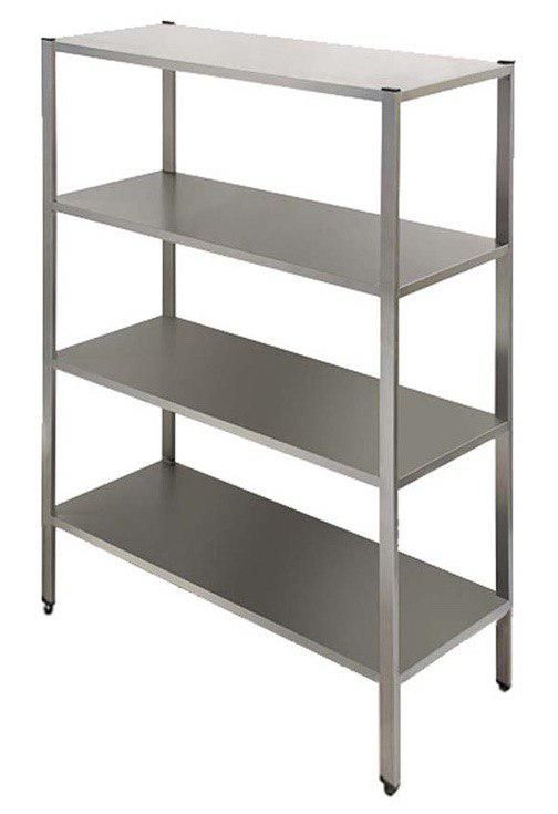 Simeco СТПС40706 предназначен для хранения посуды, кухонных приборов и принадлежностей, а также продуктов, не требующих специального температурного режима, на предприятиях общественного питания и торговли. Модель оснащена 4 регулируемыми по высоте полками. Разборный каркас выполнен из трубы 40x20 мм нержавеющей стали AISI 430, полки - из нержавеющей стали AISI 430.