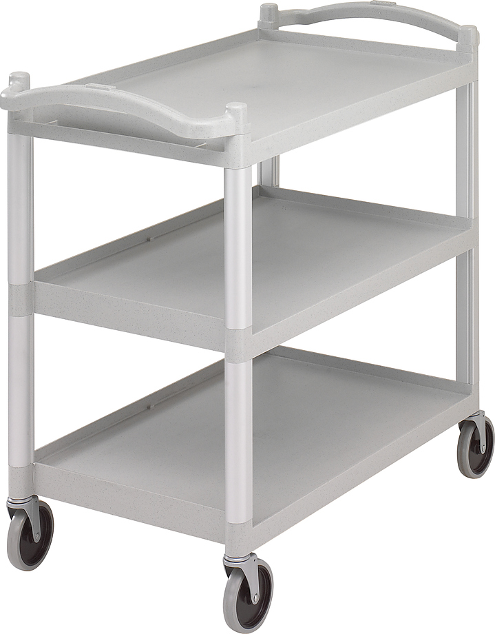 Тележка для обслуживания Cambro BC340KD 480 предназначена для транспортировки посуды, инвентаря, продуктов, пищевых отходов и предметов сервировки на предприятиях общественного питания, в медицинских учреждениях, санаториях и отелях. Изделие значительно облегчает и ускоряет процесс перемещения. Корпус выполнен из алюминия, полки - из полипропилена.
