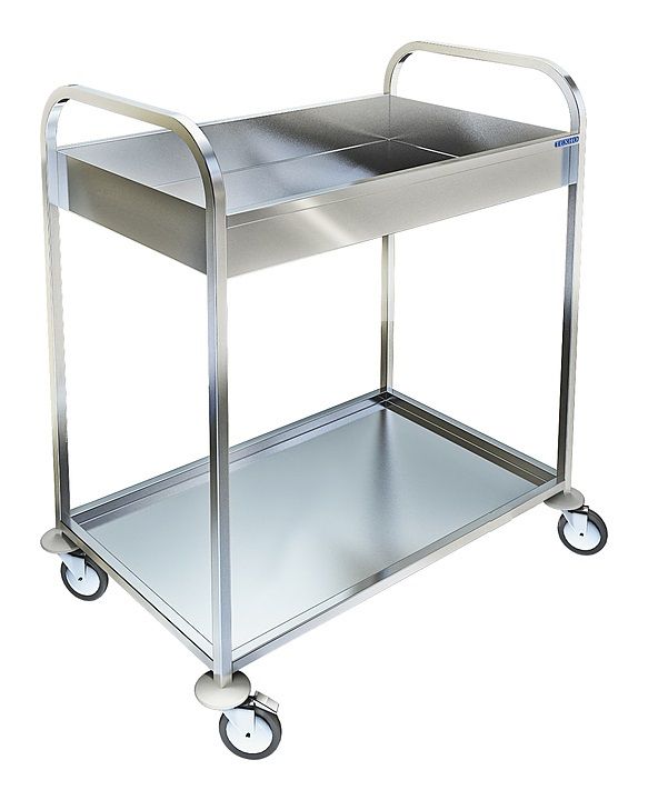 Комбинированная тележка Техно-ТТ ТП-221 предназначена для доставки готовых блюд, сбора тарелок, чашек и стаканов со столов на предприятиях общественного питания и торговли. Модель оснащена 2 полками и 4 колесами, 2 из которых с тормозными устройствами. Разборный каркас выполнен из квадратной трубы из нержавеющей стали AISI 304, полки - из нержавеющей стали AISI 304.