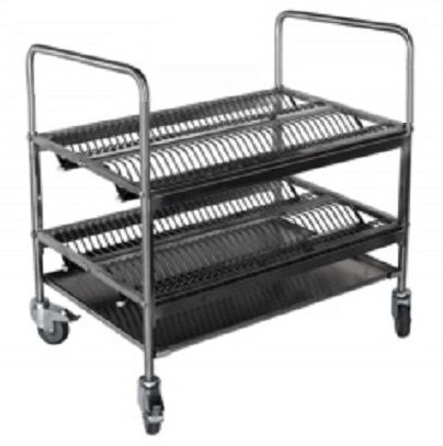 Тележка Rada ТС-2СТН предназначена для сушки и транспортировки тарелок на предприятиях общественного питания. Модель оснащена 2 колесами с тормозом и лотком для сбора воды. Изделие изготовлено из нержавеющей стали AISI 304. Тележка поставляется в разобранном виде.