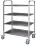 Тележка ATESY ТС-Л-4-800.500.1100-02 серии Люкс используется на предприятиях общественного питания, торговли и пищевых производствах для перемещения в зал готовых блюд, напитков и посуды, а также для сбора грязной посуды. Модель оснащена бортиком по периметру и колесами. Материал полок и стоек - высококачественная нержавеющая сталь AISI 304.