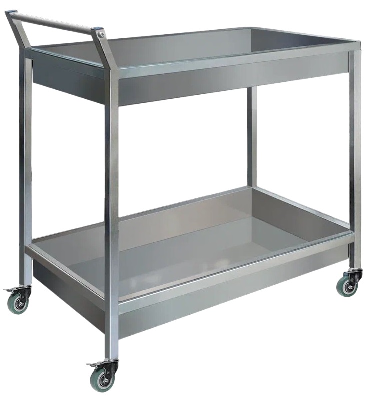Тележка Finist ТСП 800х500х850 используется на предприятиях общественного питания, торговли и пищевых производствах для сбора грязной посуды. Модель оснащена поворотными колесами, два из которых имеют тормозное устройство и 2 поддонами. Материал изделия - высококачественная нержавеющая сталь.