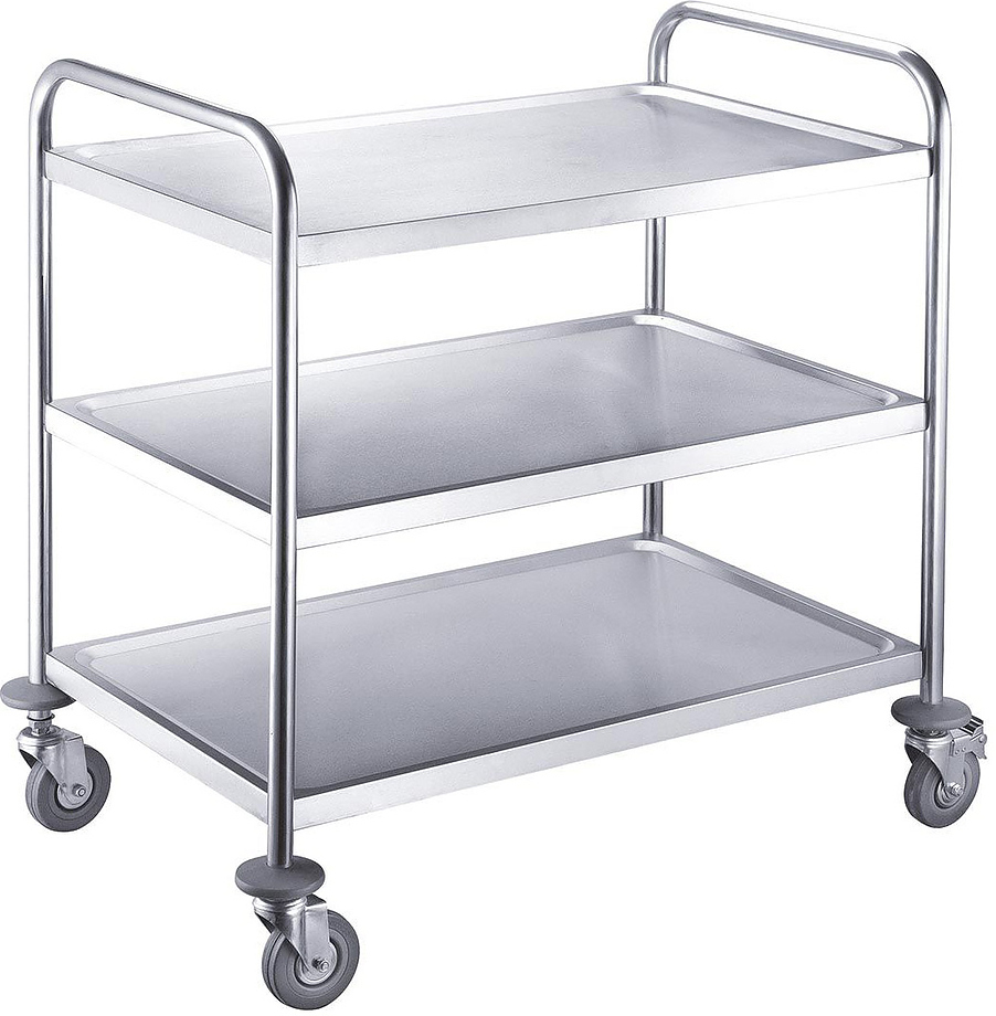 Тележка REDGASTRO FR-M3 используется на предприятиях общественного питания, торговли и пищевых производствах для перевозки готовых блюд, сбора грязной посуды и столовых приборов. Модель оснащена 3 полками и поворотными колесами диаметром 100 мм с тормозами. Материал изделия - высококачественная нержавеющая сталь.