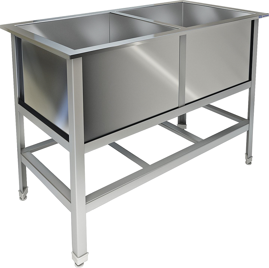 Моечная ванна Техно-ТТ ВМ-21/600 используется на предприятиях общественного питания и торговли для мытья и ополаскивания продуктов, посуды и различного инвентаря. Модель с закругленными краями оснащена регулируемыми по высоте ножками, что позволяет компенсировать неровности пола. Сварной каркас выполнен из металлического уголка толщиной 2 мм, покрытого порошковой краской, сварные мойки - из нержавеющей стали AISI 304 толщиной 0,8 мм, выпуски - из нержавеющей стали.