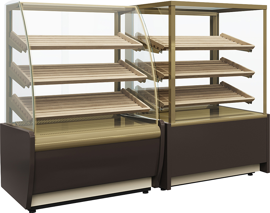 Хлебная витрина Carboma K70 N 0,9-2 LIGHT (Техно) используется на предприятиях общественного питания и торговли для демонстрации и кратковременного хранения хлебобулочных изделий. Модель оснащена боковыми стеклами, 3 наклонными деревянными решетчатыми полками и регулируемыми ножками высотой от 20 до 35 мм. Основание и декоративные панели выполнены из стали, боковины - из пластика с пенополиуретановой теплоизоляцией, раздвижные задние створки - из оргстекла.