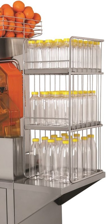 Подставка для бутылок для соковыжималок CanCan 38 используется совместно с соковыжималками CanCan для профессионального применения в ресторанах, отелях, фреш-барах, буфетах, торговых или развлекательных центрах и прочих общественных местах, где ежедневно производится большое количество апельсинового сока. Крепится к автоматической соковыжималке для апельсинов. Модель оборудована несколькими секциями. Материал - нержавеющая сталь.