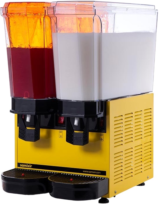 Сокоохладитель Samixir 40.SMY используется в ресторанах, кафе, барах, супер- и гипер-маркетах, магазинах, на предприятиях уличной торговли и в развлекательных центрах для охлаждения и розлива различных сокосодержащих напитков. Модель оснащена механическим термостатом, антивандальной чашей из поликарбоната, поддоном для сбора капель со встроенным индикатором воды.
