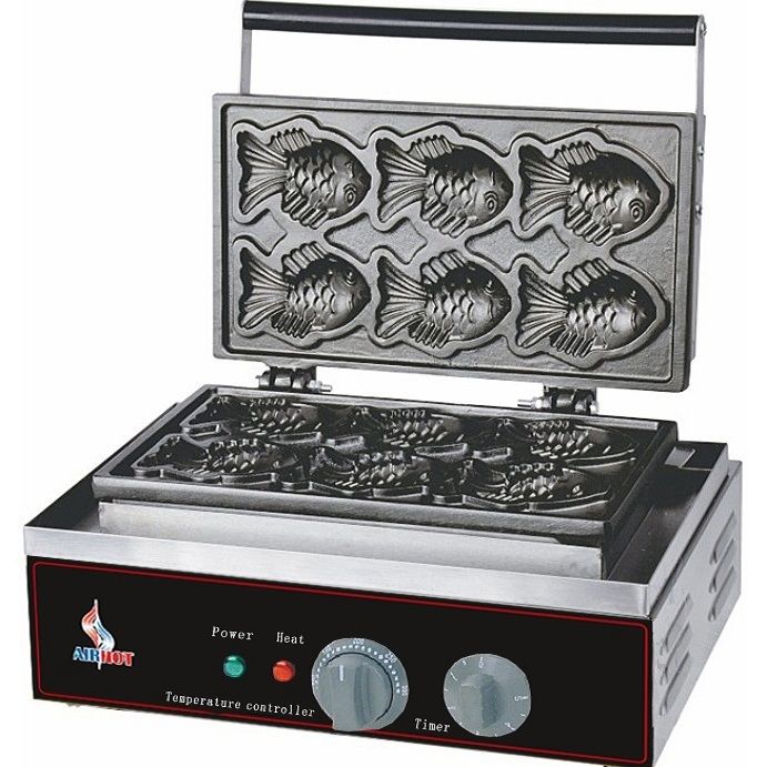 Вафельница Airhot WBF-6 используется на предприятиях общественного питания и торговли для выпекания вафель в форме рыбок. Каждая вафля может быть наполнена начинкой. Модель оснащена терморегулятором и электронным таймером. Корпус выполнен из нержавеющей стали, жарочная поверхность - из чугуна с антипригарным покрытием.