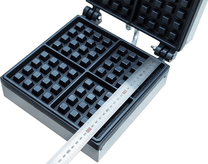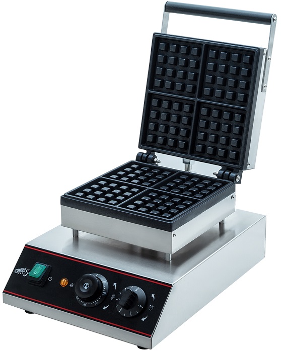 Вафельница Crazy Pan CP-WFM02 используется на предприятиях общественного питания и торговли для выпекания прямоугольных бельгийских вафель. Модель оснащена терморегулятором, 2 ТЭНами и звуковым таймером на 5 минут. Корпус выполнен из нержавеющей стали, рабочая поверхность - из чугуна с антипригарным покрытием.