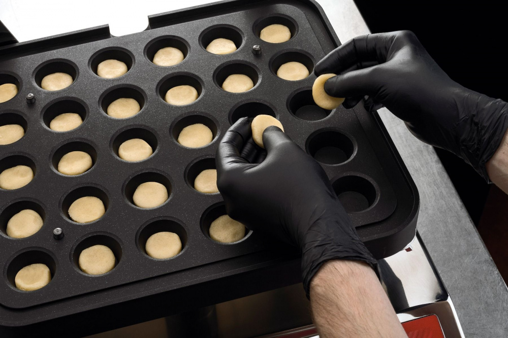 Тарталетница Pavoni NEWCOOKMATIC SPECIAL используется в пекарнях и кондитерских, на предприятиях пищевой промышленности и общественного питания для формовки и выпечки основ (тарталеток) из песочного и слоеного теста различной формы и размера. Модель оснащена электронным таймером со звуковым сигналом окончания цикла выпечки.