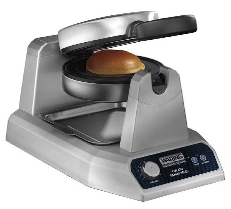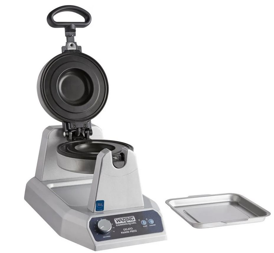 Вафельница Waring WWGP180E Gelato Panini Press предназначается для запечатывания замороженных десертов в булочке на предприятиях общественного питания, торговли и пищевых производствах. Нагревательные элементы вмонтированы в пластины, что гарантирует равномерное распределение нагрева и точный контроль температуры. Рабочие поверхности покрыты тройным антипригарным покрытием.