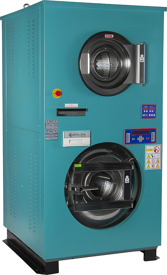 Стирально-сушильная машина Kromluks KYSK-E/10 предназначается для стирки, полоскания, отжима и сушки белья и одежды в прачечных отелей, гостиниц, оздоровительных и лечебных заведений, детских садах, школах, роддомах, на производствах, в воинских частях и предприятиях других сфер. 15 стандартных и 10 настраиваемых программ стирки, 5 программ сушки. Материал корпуса - окрашенный металл, материал барабанов и двери - нержавеющая сталь.