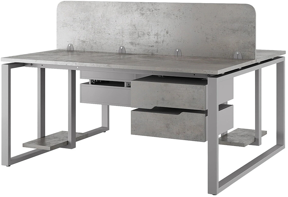Офисный стол Кобор O1/2-80/120 aluminum/chicagol предназначен для двух рабочих мест и идеально подходит для офисов и кабинетов руководителей. Модель оснащена О-образными опорами. Материал столешницы - прочный ЛДСП толщиной 25 мм, усиленная снизу металлическим каркасом, материал опор и каркаса - окрашенный металл.