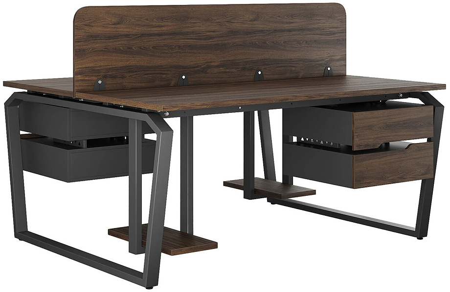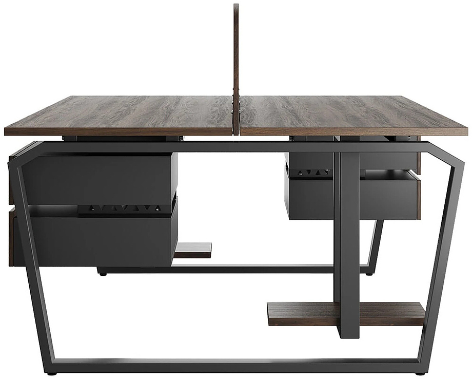 Офисный стол Кобор TB/2-80/120 black/charlston предназначен для двух рабочих мест и идеально подходит для офисов и кабинетов руководителей. Модель оснащена опорами в виде обратной трапеции с скошенными верхними углами. Материал столешницы - прочный ЛДСП толщиной 25 мм, усиленная снизу металлическим каркасом, материал опор и каркаса - окрашенный металл.