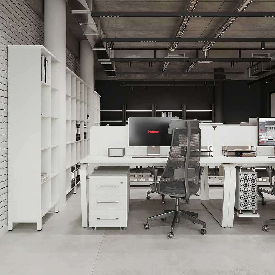 Офисный стол Кобор TB/2-80/120 white/premium предназначен для двух рабочих мест и идеально подходит для офисов и кабинетов руководителей. Модель оснащена опорами в виде обратной трапеции с скошенными верхними углами. Материал столешницы - прочный ЛДСП толщиной 25 мм, усиленная снизу металлическим каркасом, материал опор и каркаса - окрашенный металл.