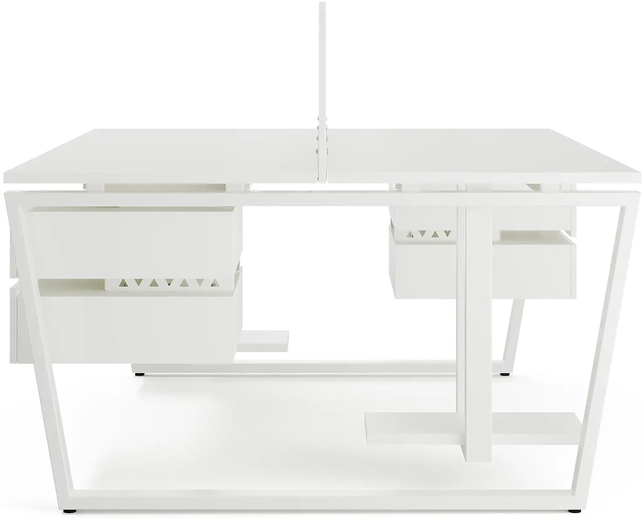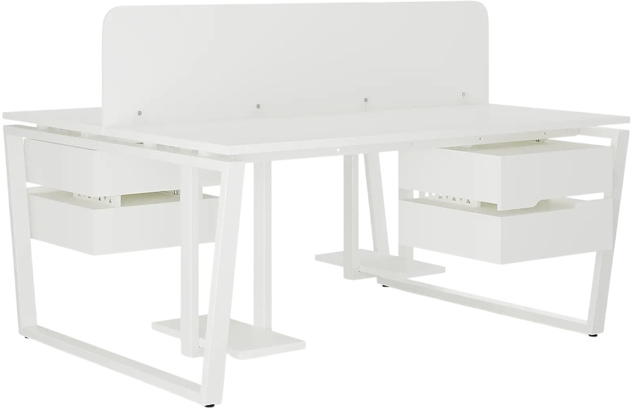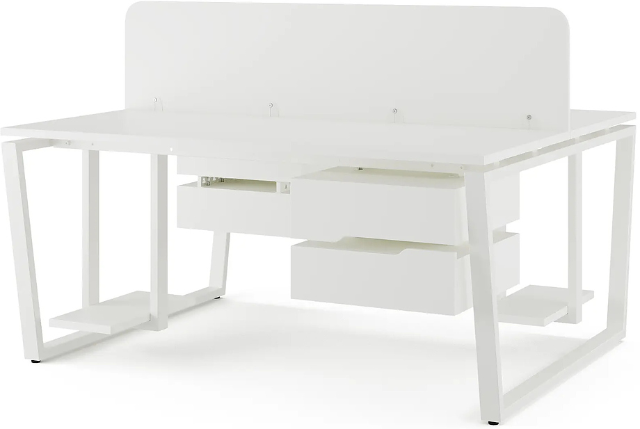 Офисный стол Кобор OTR/2-80/120 white/premium предназначен для двух рабочих мест и идеально подходит для офисов и кабинетов руководителей. Модель оснащена опорами в виде обратной трапеции. Материал столешницы - прочный ЛДСП толщиной 25 мм, усиленная снизу металлическим каркасом, материал опор и каркаса - окрашенный металл.