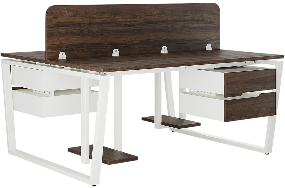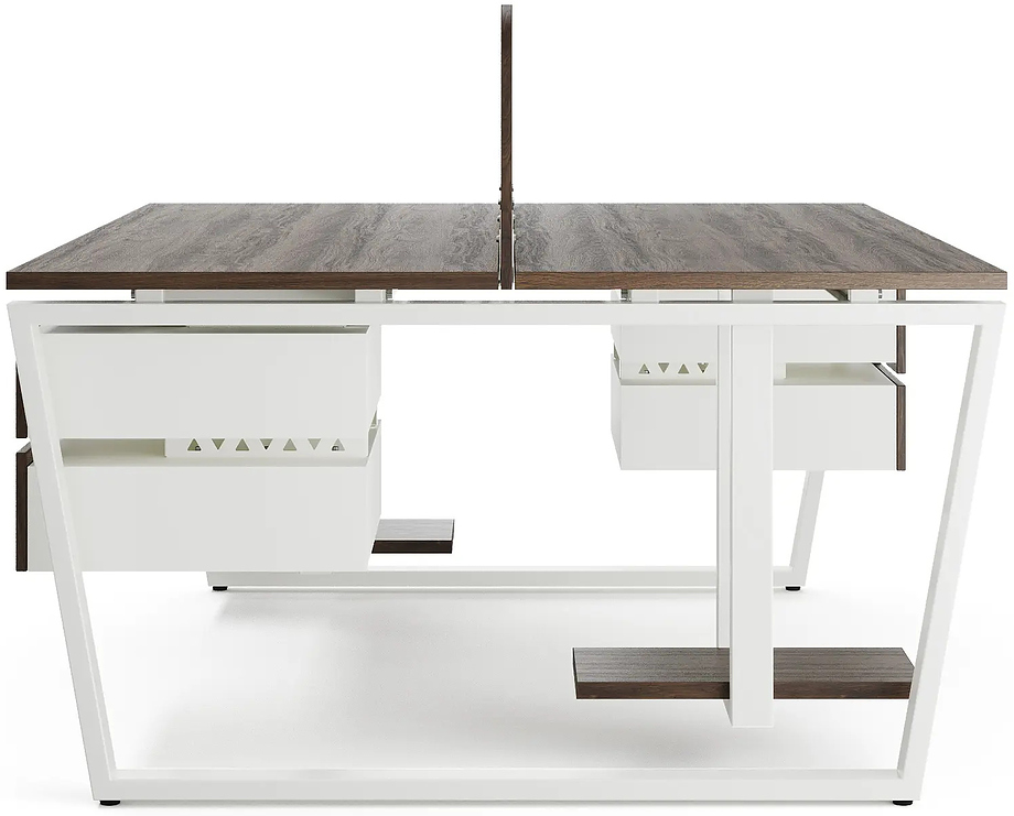 Офисный стол Кобор OTR/2-140/140 white/charlston предназначен для двух рабочих мест и идеально подходит для офисов и кабинетов руководителей. Модель оснащена опорами в виде обратной трапеции. Материал столешницы - прочный ЛДСП толщиной 25 мм, усиленная снизу металлическим каркасом, материал опор и каркаса - окрашенный металл.
