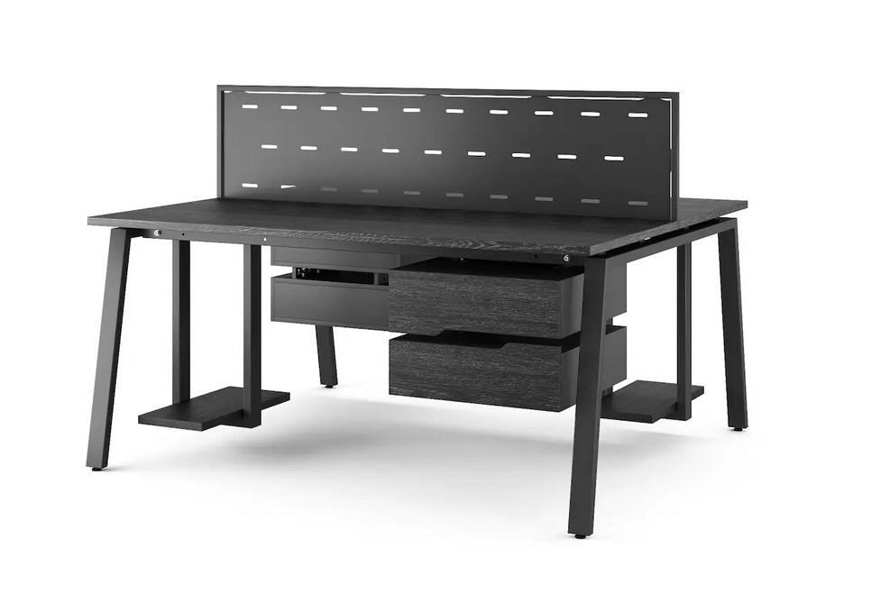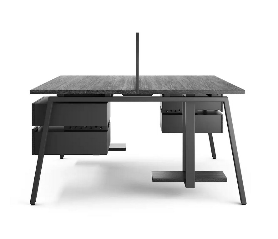 Офисный стол Кобор TA/2-80/120 black/wood предназначен для двух рабочих мест и идеально подходит для офисов и кабинетов руководителей. Модель оснащена А-образными опорами. Материал столешницы - прочный ЛДСП толщиной 25 мм, усиленная снизу металлическим каркасом, материал опор и каркаса - окрашенный металл.