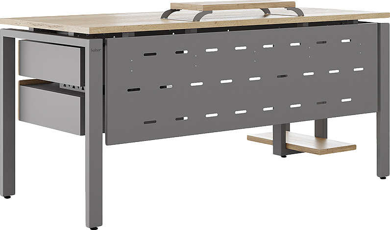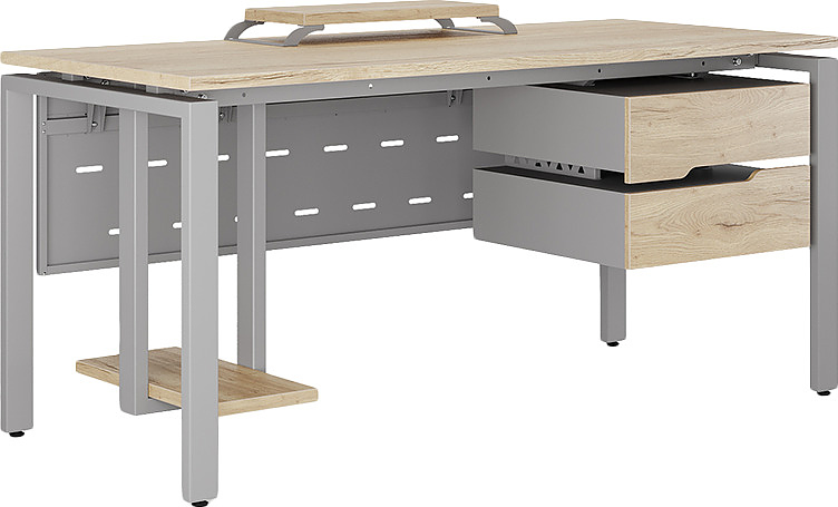 Офисный стол КОБОР P-140/70 aluminum/natural используется в офисных помещениях и кабинетах руководителей. Модель оснащена П-образными опорами. Материал столешницы - прочный ЛДСП толщиной 25 мм, усиленная снизу металлическим каркасом, материал опор и каркаса - окрашенный металл.
