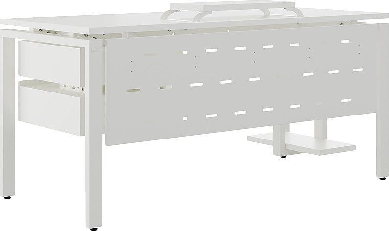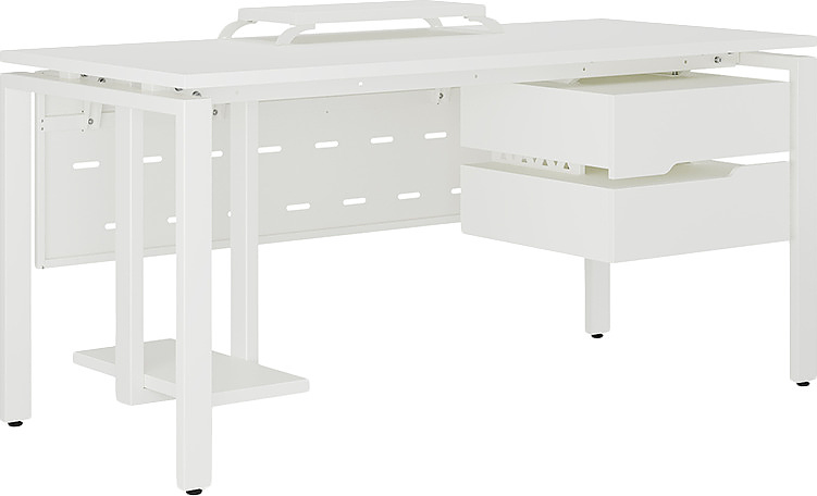 Офисный стол КОБОР P-140/70 white/premium используется в офисных помещениях и кабинетах руководителей. Модель оснащена П-образными опорами. Материал столешницы - прочный ЛДСП толщиной 25 мм, усиленная снизу металлическим каркасом, материал опор и каркаса - окрашенный металл.
