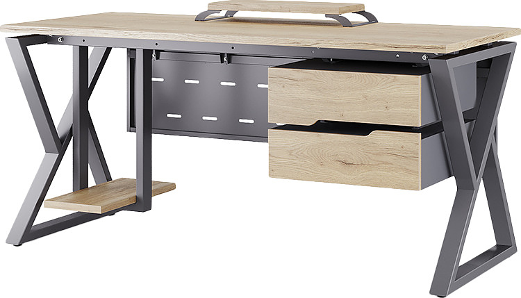 Офисный стол КОБОР W-140/70 graphite/natural используется в офисных помещениях и кабинетах руководителей. Модель оснащена W-образными опорами. Материал столешницы - прочный ЛДСП толщиной 25 мм, усиленная снизу металлическим каркасом, материал опор - окрашенный металл.