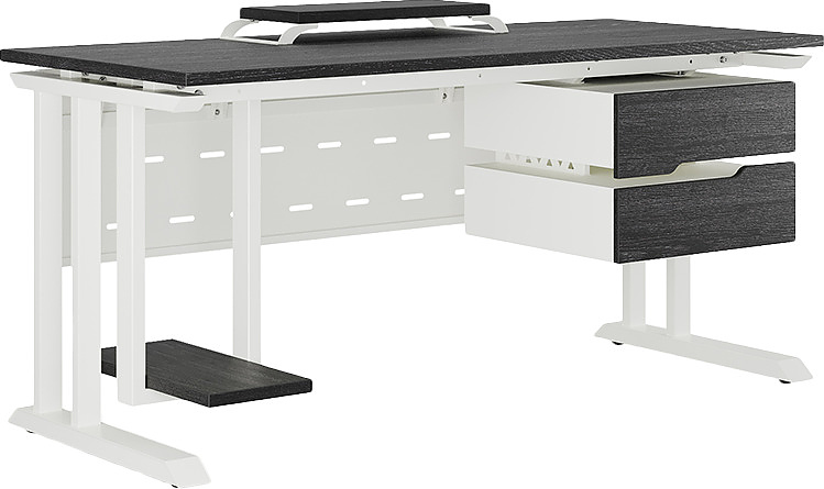 Офисный стол КОБОР L1-120/60 white/wood используется в офисных помещениях и кабинетах руководителей. Модель оснащена L-образными опорами. Материал столешницы - прочный ЛДСП толщиной 25 мм, усиленная снизу металлическим каркасом, материал опор - окрашенный металл.