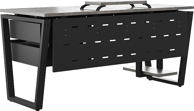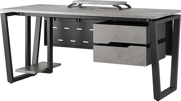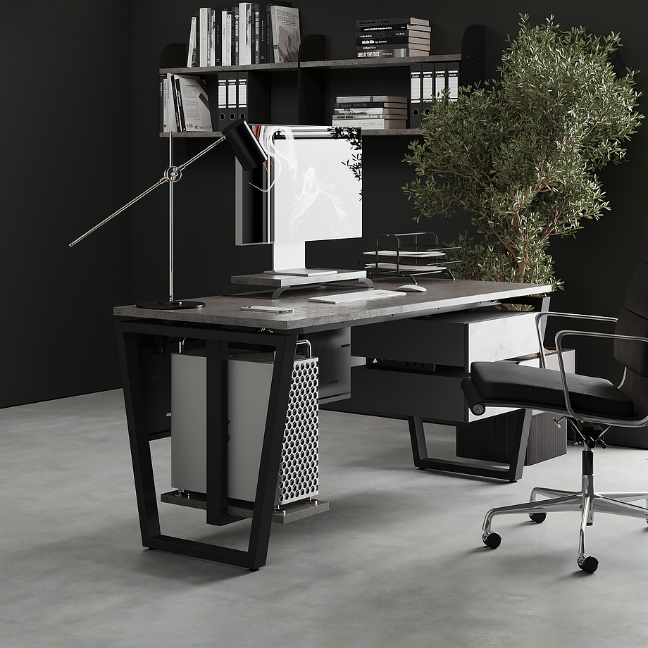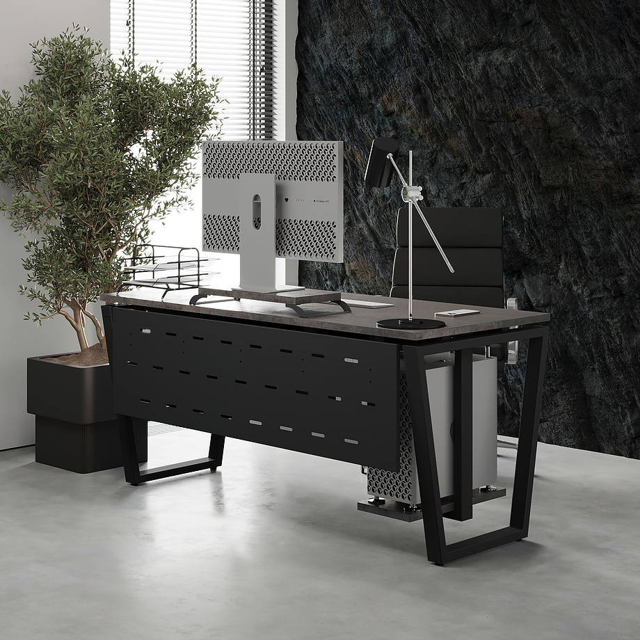 Офисный стол КОБОР OTR-120/60 black/chicago используется в офисных помещениях и кабинетах руководителей. Модель оснащена опорами в форме обратной трапеции. Материал столешницы - прочный ЛДСП толщиной 25 мм, усиленная снизу металлическим каркасом, материал опор - окрашенный металл.