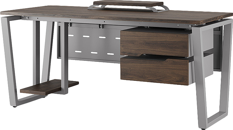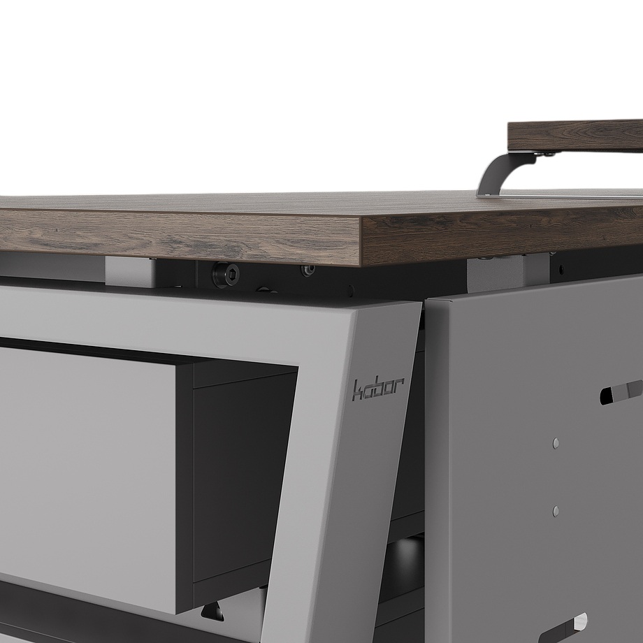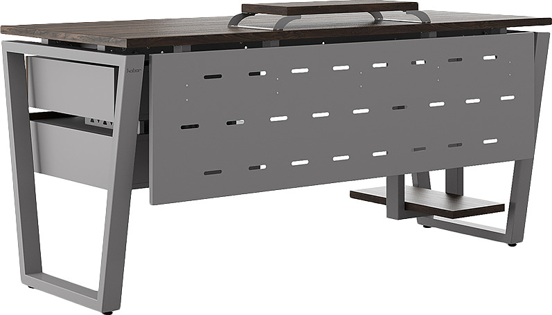 Офисный стол КОБОР OTR-120/60 aluminum/charlston используется в офисных помещениях и кабинетах руководителей. Модель оснащена опорами в форме обратной трапеции. Материал столешницы - прочный ЛДСП толщиной 25 мм, усиленная снизу металлическим каркасом, материал опор - окрашенный металл.