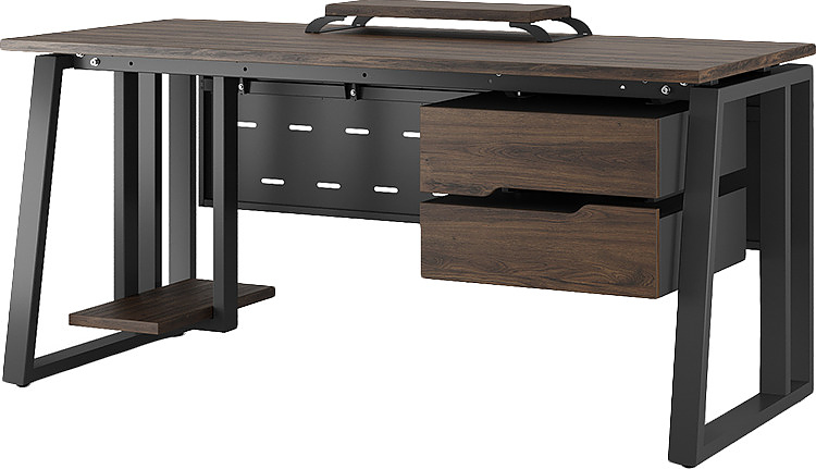 Офисный стол КОБОР TS2-120/60 black/charlston используется в офисных помещениях и кабинетах руководителей. Модель оснащена опорами в форме наклонной трапеции с усиленными вертикальными балками. Материал столешницы - прочный ЛДСП толщиной 25 мм, усиленная снизу металлическим каркасом, материал опор - окрашенный металл.