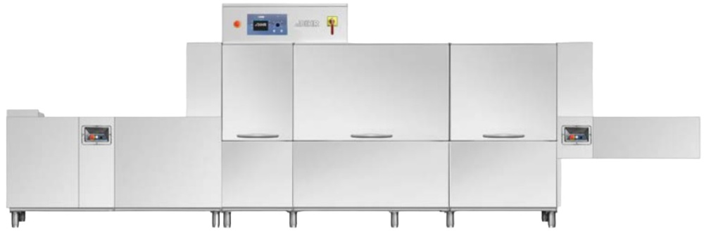 Туннельная машина DIHR LX 751+DDE+XP+DRF99M/2 части используется на предприятиях общественного питания, торговли, пищевых производствах, в медицинских и муниципальных учреждениях для мойки сплошных ящиков, форм для тортов и кексов. Модель оснащена электронным управлением, вертикальными самоочищающимися моечными насосами, дополнительной мощностью для подключения к холодной воде и ножками. Материал штампованной кислотоустойчивой ванны и бойлера - высококачественная нержавеющая сталь AISI 316, материал фильтров - нержавеющая сталь.