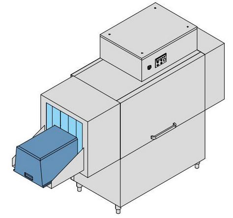 - Система центрального продвижения ящиков позволяет мыть инвентарь различной ширины