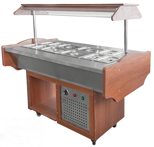 Шведский стол Пищевые Технологии СОЭП-ШС предназначен для кратковременного хранения и демонстрации холодных закусок в составе линий раздач или самостоятельно на предприятиях общественного питания и торговли. Модель оснащена открытой нишей и регулируемыми по высоте ножками. Столешница выполнена из нержавеющей стали.