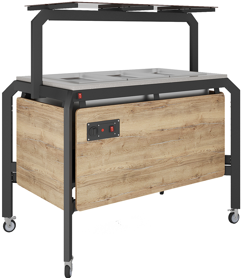 Салат-бар Enogrigo Кобор AO120 используется для демонстрационной подачи, кратковременного хранения и охлаждения салатов и холодных закусок в составе линий раздачи или самообслуживания на предприятиях общественного питания, торговли и пищевых производствах. Модель оснащена механическим терморегулятором, открытой полкой, полкой надстройкой со стеклом, и колесами, 2 из которых с тормозами. Материал сварного каркаса - окрашенная сталь (профиль с сечением 60х30 мм), материал внешнего корпуса и столешницы - ЛДСП.