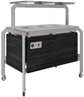 Салат-бар Enogrigo Кобор AO120 используется для демонстрационной подачи, кратковременного хранения и охлаждения салатов и холодных закусок в составе линий раздачи или самообслуживания на предприятиях общественного питания, торговли и пищевых производствах. Модель оснащена механическим терморегулятором, открытой полкой, полкой надстройкой со стеклом, и колесами, 2 из которых с тормозами. Материал сварного каркаса - окрашенная сталь (профиль с сечением 60х30 мм), материал внешнего корпуса и столешницы - ЛДСП.