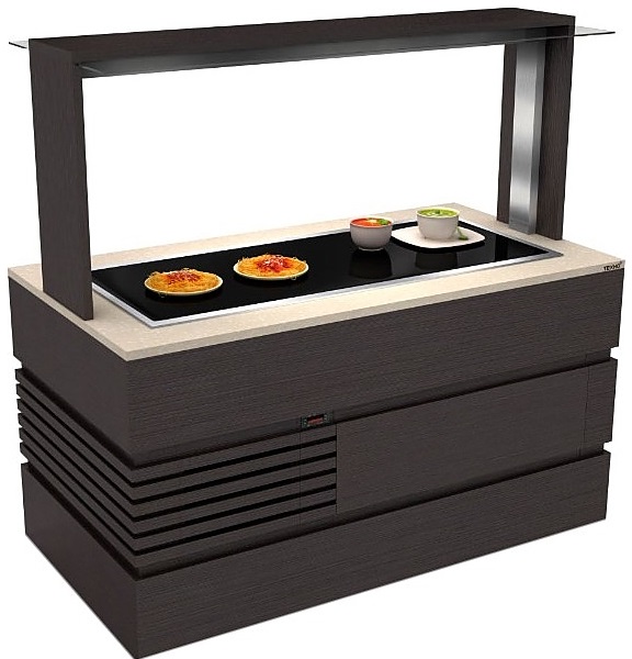 Буфет с подогреваемой столешницей Техно-ТТ БПС-112/1286 используется на предприятиях общественного питания и торговли для выкладки, подогрева и раздачи горячих блюд. Каркас - оцинкованная сталь, фасад выполнен из шпона и МДФ, столешница изготовлена из искусственного камня. В модели предусмотрена закрытая полка с подсветкой и ниша.