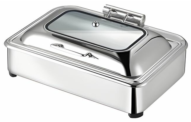 Чафинг-диш MVQ De Lux используется на предприятиях общественного питания, торговли, пищевых производствах, в домашних условиях и на выездных мероприятиях для поддержания в горячем состоянии различных блюд. Модель оснащена откидной крышкой и подходит для подогрева на индукционных плитах и горелках. Материал изделия - высококачественная нержавеющая сталь.