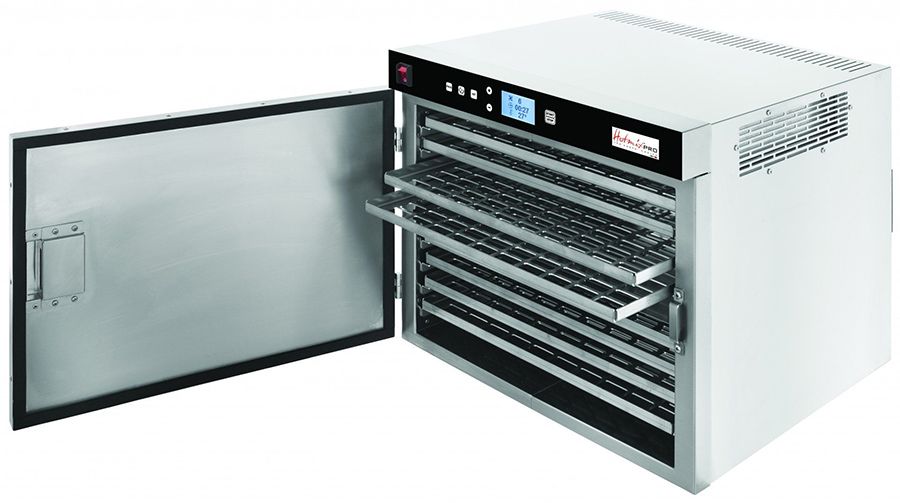 Дегидратор HotmixPRO Dry используется на предприятиях общественного питания и торговли для равномерного извлечения влаги из овощей, грибов, фруктов, ягод, трав и орехов. Корпус изготовлен из нержавеющей стали AISI 304.