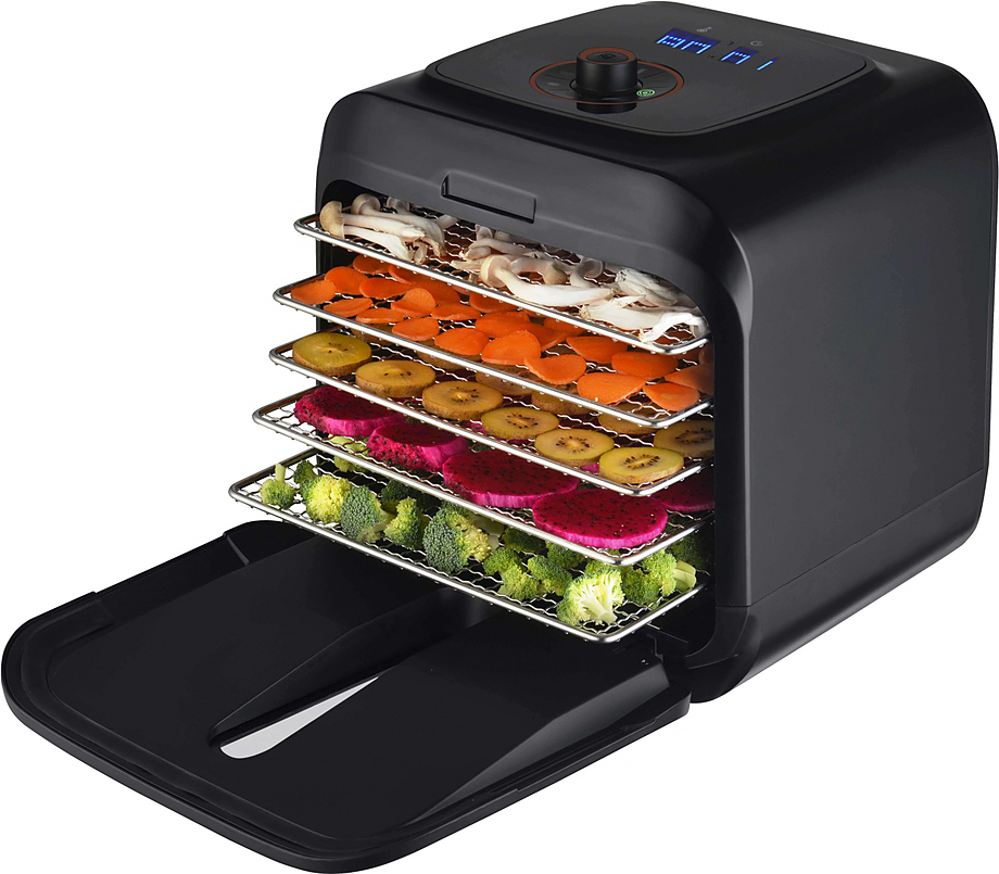 Сушилка Gemlux GL-IR500 используется на предприятиях общественного питания, торговли, в частных домах и квартирах для сушки овощей и фруктов. Модель оснащена электронным управлением, таймером, направляющими и откидной дверцей. Материал корпуса - пластмасса.